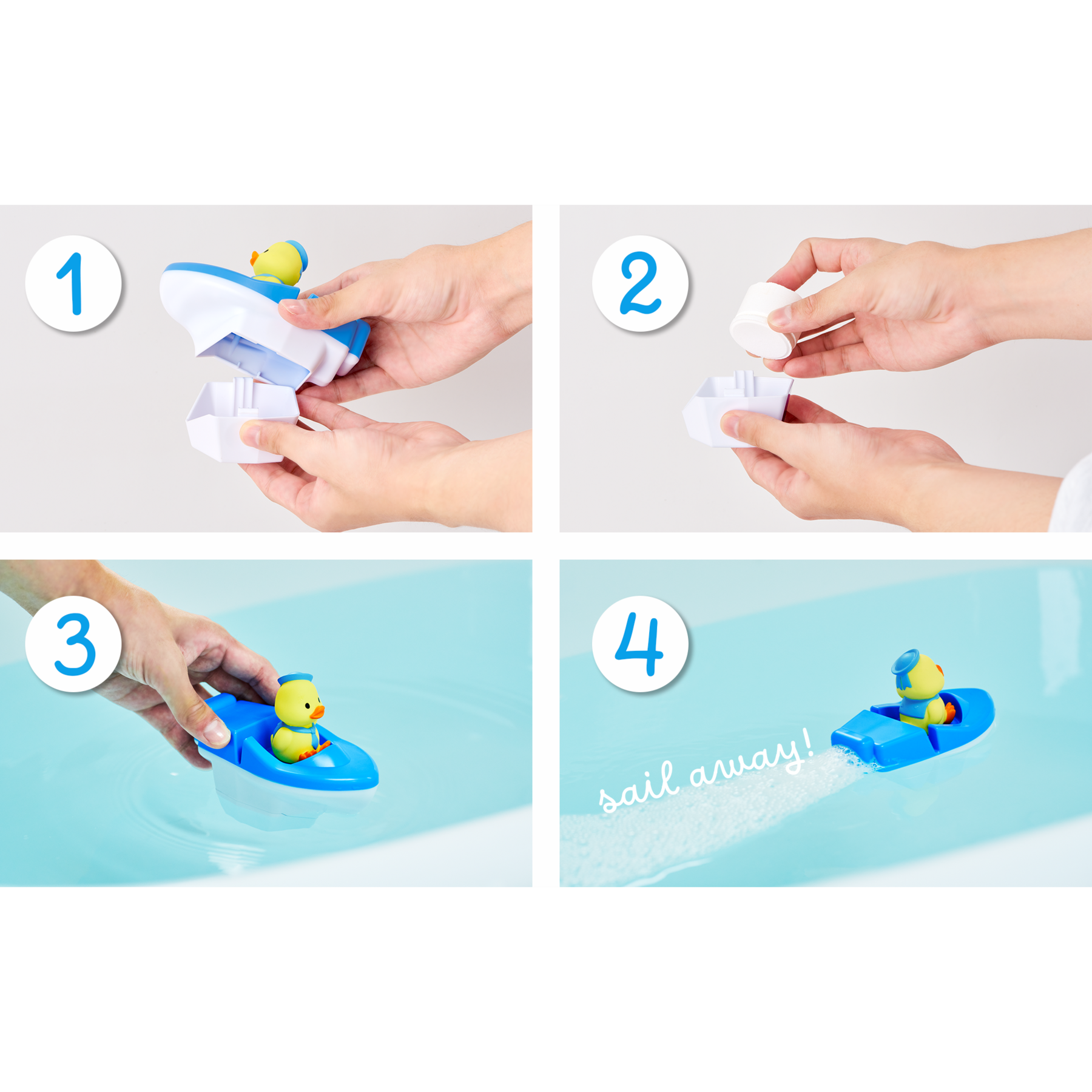 Make Bath Time An Adventure With Our Duck Sailor Boat Interactive Bath Toy! Set Sail With Pink And Blue As They Speed Through Your Tub In Their Adorable Power Boats. As The Ocean-Scented Bath Tablets Hidden Inside Their Hulls Melt, Pink And Blue Take Off!